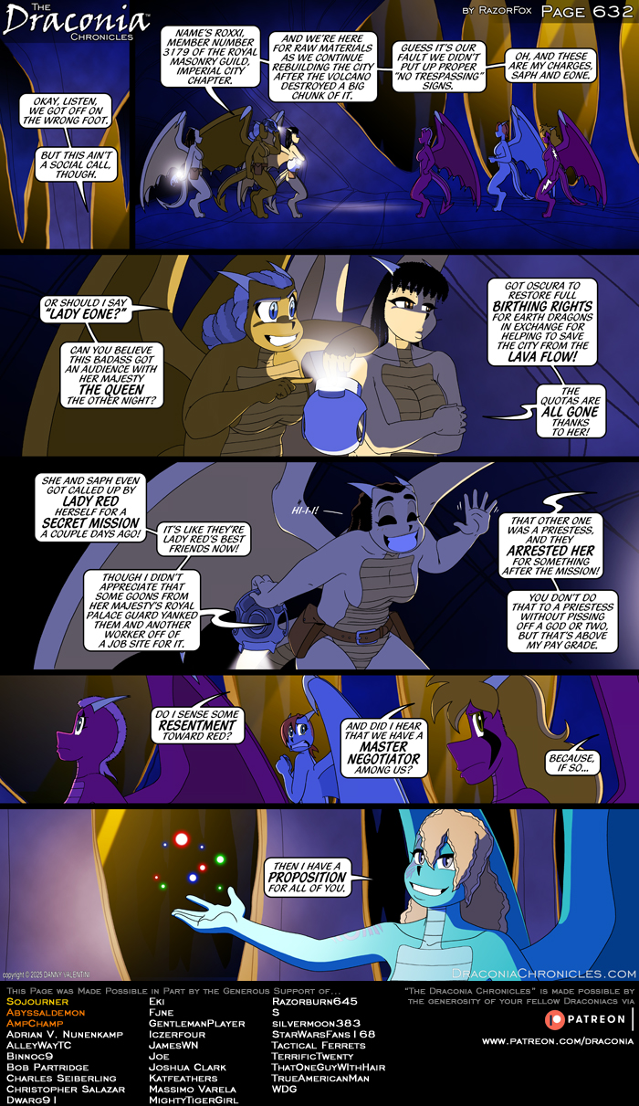 Remember that Patreon supporters who pledge $10 or more per page not only get their name on the pages they help make possible and they also get to check out deliciously deviant bonus art and uncensored high-resolution versions of new pages! You can also support the comic at other levels to check out new content before it goes public and to see new pages as they get drawn and rendered. Everyone gets to see hi-res versions of new pages, too! Your support helps keeps the site working and it keeps The Draconia Chronicles going strong, so pledge your support today!