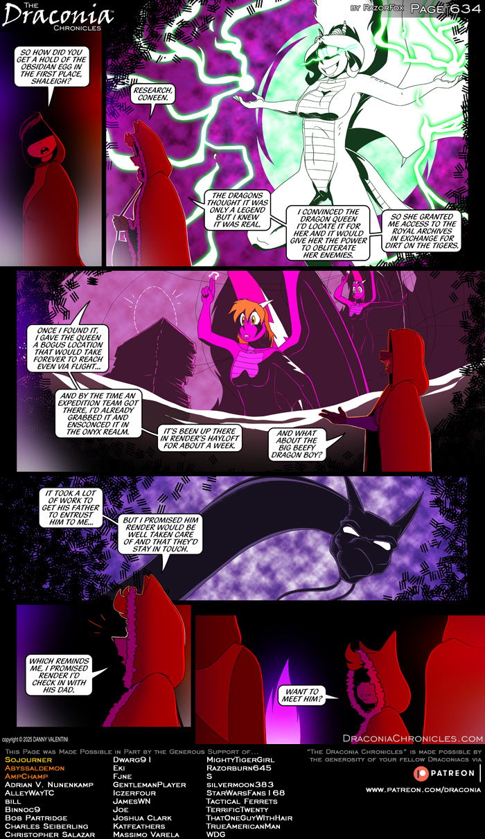 Remember that Patreon supporters who pledge $10 or more per page not only get their name on the pages they help make possible and they also get to check out deliciously deviant bonus art and uncensored high-resolution versions of new pages! You can also support the comic at other levels to check out new content before it goes public and to see new pages as they get drawn and rendered. Everyone gets to see hi-res versions of new pages, too! Your support helps keeps the site working and it keeps The Draconia Chronicles going strong, so pledge your support today!