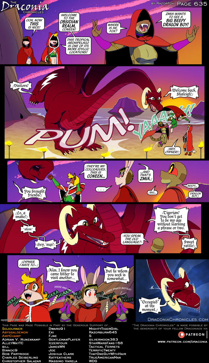 Remember that Patreon supporters who pledge $10 or more per page not only get their name on the pages they help make possible and they also get to check out deliciously deviant bonus art and uncensored high-resolution versions of new pages! You can also support the comic at other levels to check out new content before it goes public and to see new pages as they get drawn and rendered. Everyone gets to see hi-res versions of new pages, too! Your support helps keeps the site working and it keeps The Draconia Chronicles going strong, so pledge your support today!