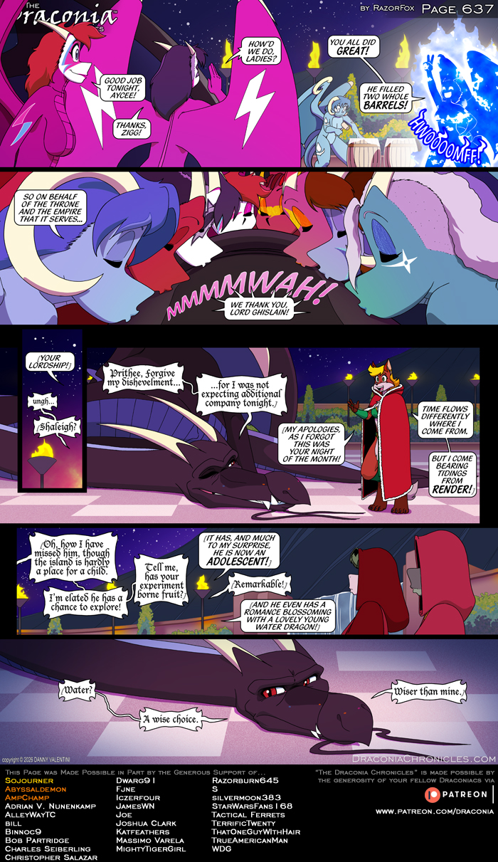 Remember that Patreon supporters who pledge $10 or more per page not only get their name on the pages they help make possible and they also get to check out deliciously deviant bonus art and uncensored high-resolution versions of new pages! You can also support the comic at other levels to check out new content before it goes public and to see new pages as they get drawn and rendered. Everyone gets to see hi-res versions of new pages, too! Your support helps keeps the site working and it keeps The Draconia Chronicles going strong, so pledge your support today!
